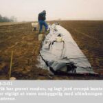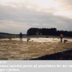 Derefter udlægges plastikken. Det holder på fugten, og desuden undgår man ukrudt! Jo mere plant jordstykket er, desto tættere ligger plastikken til jorden. Det er sværere at få stiklingerne sat i, hvis der er luft mellem plastikken og jorden.